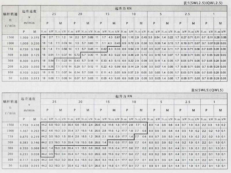 SWL2.5-SWL5絲桿升降機配套功率