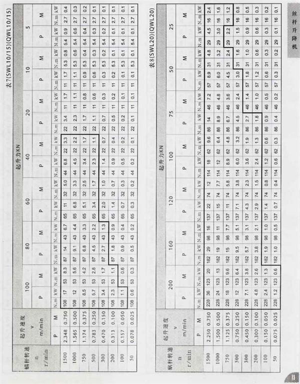 SWL10-SWL20絲桿升降機(jī)配套功率