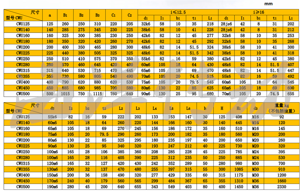 內容: CWU- 蝸桿在蝸輪之下的圓弧圓柱蝸桿減速機