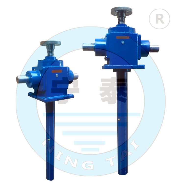 錐齒輪升降機 可廣泛用于機械、冶金、建筑、水利、化工、醫(yī)療、文化衛(wèi)生等各個行業(yè)。如:機械加工上重壓緊固裝置升降臺、翻轉裝置及塑料加工機械等;安裝和維修用爬梯和工具升降架、機車維修升降臺位;軋機滾道間隙調整、棺材或板材送位置的調整;鑄造啟模或混凝土凝土造型;冶煉方面用于調整電極、熱液體澆鑄;建筑方面用于移動設備和組合成品的模板,可升降的窗戶、墻壁、圍墻等;文化衛(wèi)生方面可升降舞臺、調整游泳池池面高度、調整手術臺高度;水利方面用于水庫的閘門和保護板;科研方面用于不能用人力調整的運動等。特適用于大型的升降平臺。