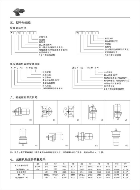 擺線針輪減速型號示例及選型參考