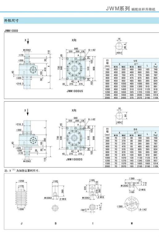 減速機(jī)|蝸輪絲桿升降機(jī)-JWM升降機(jī)750、1000外形尺寸圖-海洋傳動(dòng)