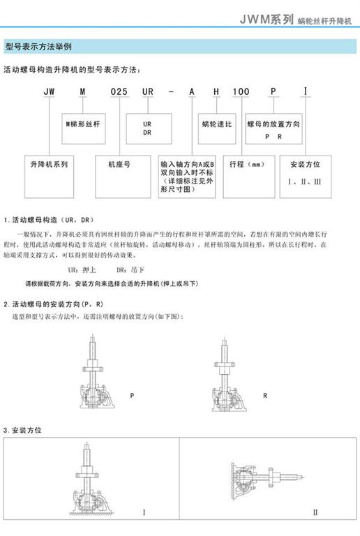 JWM蝸輪絲桿升降機(jī)活動(dòng)螺母構(gòu)造及型號(hào)表示方法
