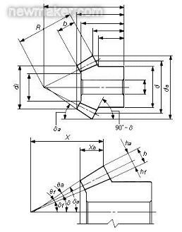 傘齒輪加工圖面及尺寸標(biāo)注的標(biāo)準(zhǔn)范例, 比較進(jìn)化的傘齒輪要項尺寸計算(表, 程序)中, 其尺寸, 強(qiáng)度計算項目的順序也都是依傘齒輪設(shè)計的程序順次排序. 其目的非常明顯。