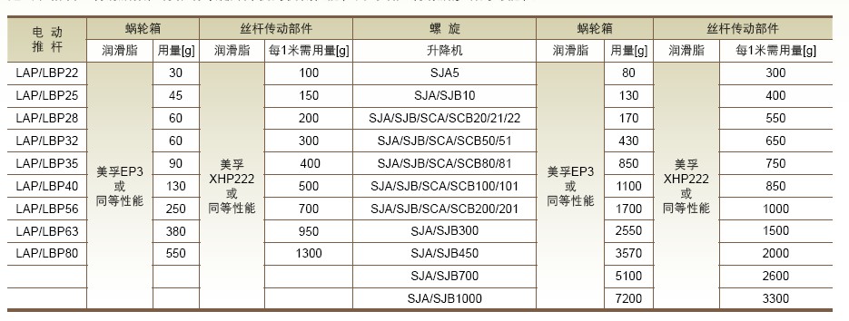 超出表格填入潤滑脂數值將影響螺旋升降機的機械性能,同時增加潤滑脂滲漏的可能性
