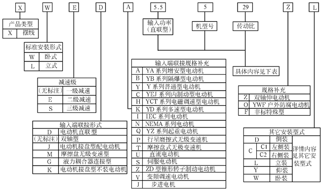 雙級擺線減速機機型對照表